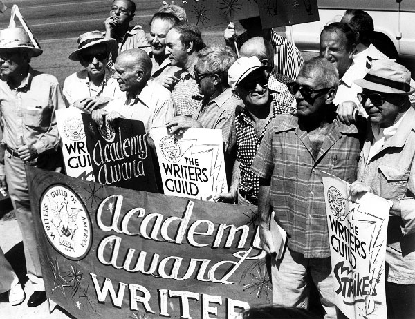 Oscar-winners on the picket line during the 1981 writers’ strike1981 – The Guild struck for 13 weeks. Gains included terms for made-for-pay television programs. Terms for reuse of television programs on nascent basic cable channels were changed from fixed residuals to 1.2% of distributor’s gross receipts.